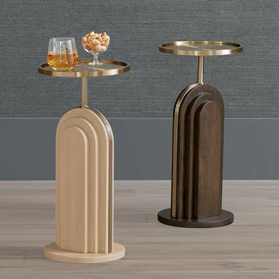 <div class="updp-details-container">With an accommodating size and arching stepped structure reminiscent of art deco architecture, our Nala Drink Table is a welcome accent in any room. A burnished brass tabletop and trim complement the oak veneer.Solid and engineered hardwood with oak veneer. Cocoa or Almond finish. Burnished brass tabletop and accent trim. Coordinates with the Nala Coffee and Side Table. Coordinates with the Meryl Drink Table. Adjustable levelers. For indoor use. Clean tabletop with a soft cloth. Arrives assembled. A Frontgate exclusive.At Frontgate, our primary focus is quality. We guarantee that every product we sell will stand up to the supreme test our customers satisfaction. To learn more about our policies, visit our Shipping & Processing, Returns & Exchanges and Warranty & Price Guarantee pages.