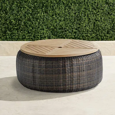 Strong all-weather, UV-resistant wicker is woven over a powdercoated aluminum frame to create our Pasadena Coffee Table. Pair with a sectional and embrace outdoor living. Part of the Pasadena Collection. All-weather wicker is handwoven over a powdercoated aluminum frame. Premium wicker construction resists mold, mildew, fading and splintering. Tabletop crafted of durable Envirowood , which is UV-resistant and easy to clean. Bronze wicker finish. Adjustable feet for leveling. 2" umbrella hole with cap. Accommodates umbrellas up to 9 and poles up to 2" in diameter. Base is weighted for stability. Removable tabletops with storage below. Integrated beverage tub concealed under one of the Envirowood tops. To prevent injuries or damage to item, recommended team lift (two or more people) for placement of tables. Wipe clean with a damp cloth; avoid harsh or abrasive chemicals that may damage the finish. Use of coasters is recommended to prevent watermarks and scratching. Arrives assembled. A Frontgate exclusive. At Frontgate, our primary focus is quality. We guarantee that every product we sell will stand up to the supreme test our customers' satisfaction. To learn more about our policies, visit our Shipping & Processing, Returns & Exchanges and Warranty & Price Guarantee pages.
