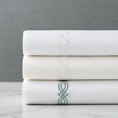 Delicate diamond lattice embroidery brings subtle detail to this soft and smooth sheet set. Made using 100% cotton with a 600 thread count sateen, this sheeting easily mixes and matches with other pieces from our Frontgate Resort Collection. 100% long-staple cotton 600 thread count sateen Mercerized finish for luster and strength Set includes a flat sheet, fitted sheet and two pillowcases Flat sheet and pillowcases have diamond lattice embroidery trim Optional 2" monogram available Machine wash cold on gentle cycle; tumble dry low; warm iron as needed Standard 100 by OEKO-TEX certified Made in Portugal . A Frontgate exclusive. At Frontgate, our primary focus is quality. We guarantee that every product we sell will stand up to the supreme test our customers' satisfaction. To learn more about our policies, visit our Shipping & Processing, Returns & Exchanges and Warranty & Price Guarantee pages.