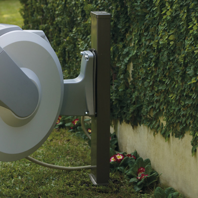 The Retractable Hose Reel Post is constructed of powdercoated steel and is a recommended accessory for our Vector Retractable Hose Reel (product #144861). Hose reel sits 4" from ground when mounted to the post.