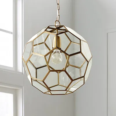 Individual glass panes within a brass-finished iron frame create an eye-catching pendant light that adds stylish illumination to any room.Individual glass panes in a brass-finished iron frame. Takes a 60-watt or LED equivalent bulb (sold separately). Hardwired; professional installation recommended. 6 ft. gold chain. 12 ft. cord. Wipe clean with a soft, dry cloth. A Frontgate exclusive.At Frontgate, our primary focus is quality. We guarantee that every product we sell will stand up to the supreme test our customers' satisfaction. To learn more about our policies, visit our Shipping & Processing, Returns & Exchanges and Warranty & Price Guarantee pages.