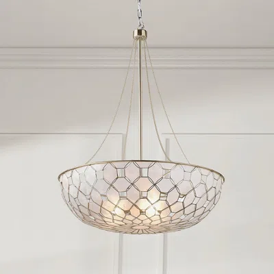 <div class="updp-details-container">This lighting contains a cutout capiz pattern that offers a complex and natural visual effect along with decorative chains for a classic look. When lit, this pendant brings a warm glow with intricate shadows from the capiz design providing illuminated art.Made of aluminum and capiz shell. Metal features a polished finish. Requires three 60 Watt or LED equivalent, B10 bulbs (not included)Frosted bulbs recommended. . E12 socket type. 6 ft. adjustable chain. Hardwired (professional installation recommended). Slanted ceiling compatible. UL listed for dry environments. Compatible with dimmer switch (not included). Imported. A Frontgate exclusive.At Frontgate, our primary focus is quality. We guarantee that every product we sell will stand up to the supreme test our customers satisfaction. To learn more about our policies, visit our Shipping & Processing, Returns & Exchanges and Warranty & Price Guarantee pages.
