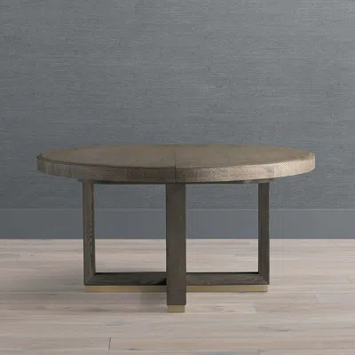 <div class="updp-details-container">With a neutral Gray Oak finish and simple transitional design, our Solene Extendable Round Dining Table will complement any style. The clean-lined tabletop and X-shaped base are enhanced with molded and beveled edges, as well as satin brass-finished panels on the plinth. A 12" leaf extends the round table to a 60" long oval shape.Oak with an oak veneer. Gray Oak finish. Stainless steel accents with a satin brass finish. Comfortably seats four adults; extends to comfortably seat six adults. Includes one 12-inch leaf extension. Assembly required. Coordinates with other items in the Solene Collection. A Frontgate exclusive.At Frontgate, our primary focus is quality. We guarantee that every product we sell will stand up to the supreme test our customers satisfaction. To learn more about our policies, visit our Shipping & Processing, Returns & Exchanges and Warranty & Price Guarantee pages.