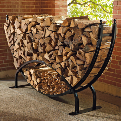 Our heavy-duty Log Racks are built like a bridge to stay stable under up to a ton of firewood. The sleek, architectural design means you wont have to hide it in the back of the yard - keep it close to home by the patio or deck.Superior engineering and construction renders this two-section rack safe and stable, no matter how unevenly logs are stacked on the top section. Built to Frontgates exacting specifications of 14-gauge 1-3/4" steel. Below, theres ample space for kindling and smaller logs. Elevated to keep wood insect-free and dry for faster lighting and more efficient burning. Legs have been slightly angled to provide more support. Assembly required; view instructions. To prevent injuries or damage to item, recommended team lift (two or more people) for furniture placement . Standard holds 1/8 cord, supports 1,700 pounds. Estate holds 1/4 cord, supports over 2,200 pounds.