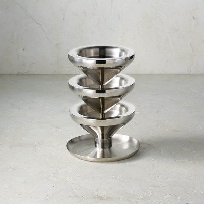 The Super Chill Shrimp Tower keeps shrimp and cocktail sauce perfectly chilled for hours without ice. Each level features a gel-based inner layer that freezes when set in the freezer overnight. Stacks effortlessly together to create a unique tower profile. Double-walled stainless stee. Gel-based inner layer that freezes like ice and holds its temperature for hours. Drip plate on bottom catches dripping water . Wont leave messy water rings on tabletops or fine furnishings. Holds approximately 60 jumbo shrimp. Place in a freezer prior to use. Indoor or outdoor use. Hand wash only. A Frontgate exclusive.