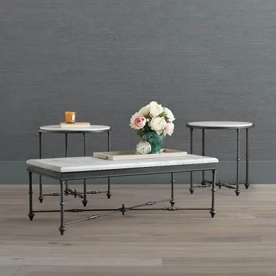 Inspired by classical French design, these tables unite antiqued iron with a top of Carrara marble to create tables that feel at home no matter where theyre placed.Set includes one rectangular coffee table and two side tables. Cast iron legs and frame. Antiqued iron finish. Tabletop features Carrara marble over an engineered wood base. Due to natural variations in marble, each piece is inherently unique. Hand-applied patina finish. Clean with a soft, damp cloth. For indoor use. Assembly required (coffee table only). To prevent injuries or damage to item, recommended team lift (two or more people) for furniture placement. A Frontgate exclusive.At Frontgate, our primary focus is quality. We guarantee that every product we sell will stand up to the supreme test our customers satisfaction. To learn more about our policies, visit our Shipping & Processing, Returns & Exchanges and Warranty & Price Guarantee pages.