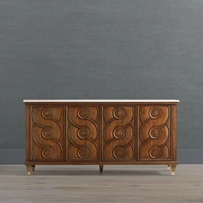 <div class="updp-details-container">With coin molding on the door fronts and a Crema Marfil marble top, our Villa Sideboard has the look of a cherished heirloom. Two sets of double doors offer easy access to ample and customizable storage, featuring two interior drawers and two reversible wine shelves. Integrated USB-C and AC charging ports and a cord management ?? system further elevate the piece.Solid mahogany with a ropey cherry veneer. Acorn finish. Crema Marfil marble top. Due to natural variations in marble, each piece is inherently unique. Tapered square feet with brass-finished ferrules. Two adjustable and removable shelves, flat on one side and slotted on the other for secure wine bottle storage. Two soft-close full-extension drawers. Integrated power strip with cord management system. USB-C and AC charging ports. Soft-close doors and hinges. Push-open door mechanism. Included anti-tip kit is required for installation; kit consists of safety-tested mounting hardware, a nylon strap and instructions. To prevent injuries from furniture tipping over, this item must be permanently affixed to the wall; professional installation is recommended. To prevent injuries or damage to item, recommended team lift (two or more people) for furniture placement. Some assembly. A Frontgate exclusive.At Frontgate, our primary focus is quality. We guarantee that every product we sell will stand up to the supreme test our customers satisfaction. To learn more about our policies, visit our Shipping & Processing, Returns & Exchanges and Warranty & Price Guarantee pages.