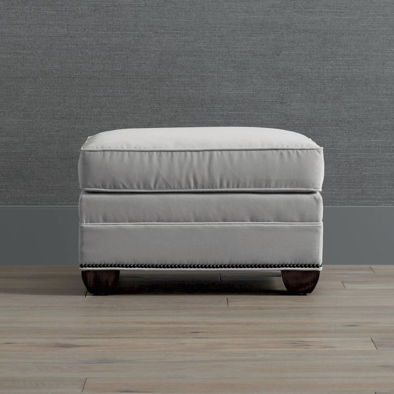 Our versatile Warren Ottoman easily complements a variety of decor styles. Handcrafted in the USA, this premium ottoman features a feather- and down-wrapped cushion and a hardwood frame upholstered with your choice of over 100 top-quality fabrics. Premium Series Upholstery Collection. Engineered hardwood frame. High-density foam cushion wrapped with feathers and down for maximum comfort. Handcrafted. Upholstered seat cushion. Velvet naturally ages over time, resulting in light marks or bruising that add to its character and sheen. Performance fabric resists stains and repels water and oils, ensuring easy cleaning. Leather is a natural material, retaining character marks and subtle shade variations; no two pieces are exactly alike. Performance leather is treated to reduce scratching, fading, staining and color variation. Amarone wood finish. Plastic nonmarring foot glides. For indoor use. To prevent injuries or damage to item, recommended team lift (two or more people) for furniture placement . Imported/Handcrafted in USA. A Frontgate exclusive.