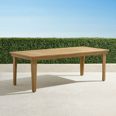 Our Windsor Teak Expandable Dining Table can seat up to 10 guests with ease. The table is handcrafted from high-quality teak that has been kiln dried to eliminate expansion and shrinkage. Stainless steel hardware is fully concealed, so nothing interrupts the clean, smooth lines. Hand-built from sustainably harvested, high-quality teak that is naturally resistant to mildew, so it holds up to rain and humidity. Durable teak frame is kiln-dried to remove moisture, guarding against warping and cracking, and sanded by hand so its smooth to the touch. Over time, teak will develop a natural silver patina if left untreated. Comfortably seats six adults when closed, up to 10 adults when extended. An easy pull of the sides reveals a butterfly extension that easily folds up and into place. Built-in butterfly extension concealed beneath the slatted surface. Umbrella hole accessible when extended. Assembly required. A Frontgate exclusive.