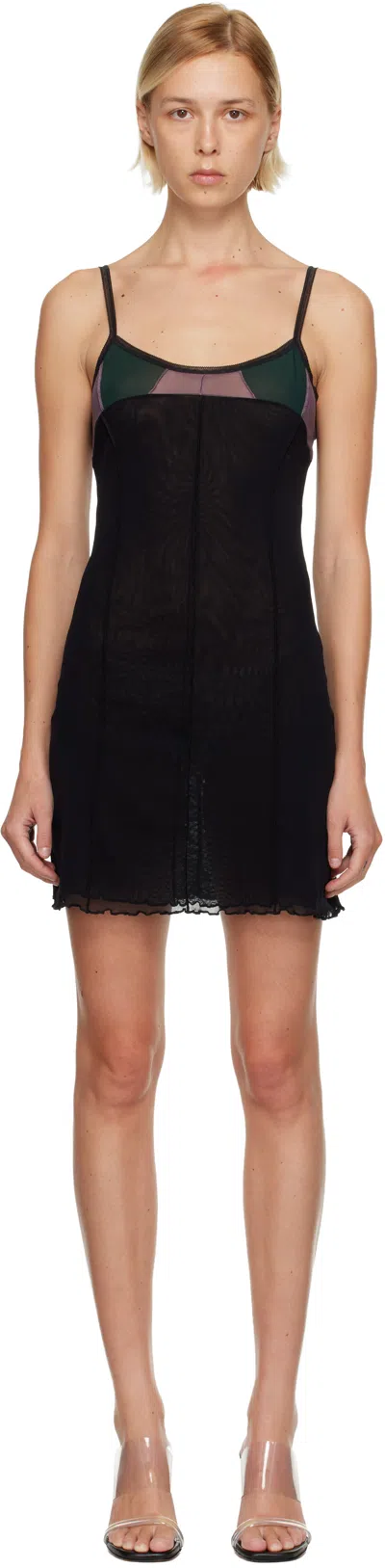 Semi-sheer nylon mesh minidress. · Paneled construction · Pinched seams throughout · Picot trim at scoop neck · Lettuce edge at hem · Fixed spaghetti straps · Full nylon mesh lining Supplier color: Black