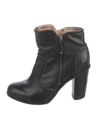 Frye Leather Ankle Boots Black Round-Toes Exposed Zip Closure at Sides Designer Fit: This designer typically runs true to size. Unfortunately, due to restrictions, this item may not be eligible for shipping in all areas. | Frye Leather Boots in Black, Women's US 8.5 | 8.5