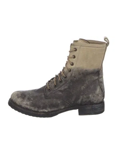 Frye Leather Ankle Combat Boots Black & Neutrals Colorblock Pattern Round-Toes Lace-Up Closure at Uppers Designer Fit: This designer typically runs true to size. Unfortunately, due to restrictions, this item may not be eligible for shipping in all areas. | Frye Leather Colorblock Pattern Combat Boots in Black/Neutrals, Women's 9