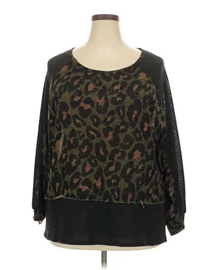 FSL Apparel Pullover Sweater, Size: 2X. Item Details: Black, Animal Print Pattern, Scoop Neck, 3/4 Sleeve, Velvet, Women's Tops