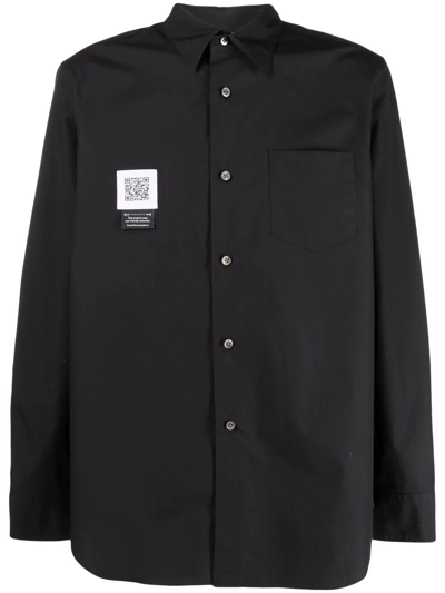 FUMITO GANRYU Logo-patch Draped Cotton Shirt In Black