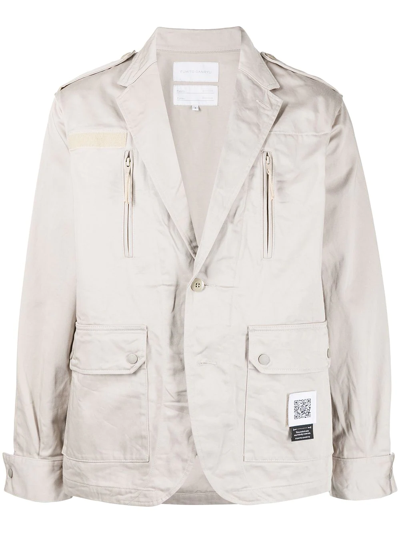 FUMITO GANRYU Single-breasted Multiple-pocket Blazer In Grey