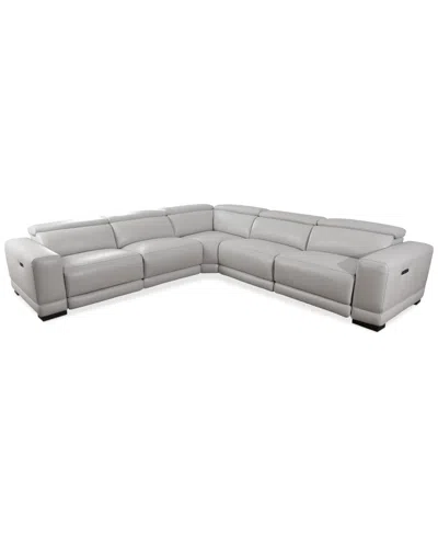 Closeout! Krofton 5-pc. Beyond Leather Fabric Sectional With 3 Power Motion Recliners, Created For M In Fog