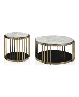 FURNITURE OF AMERICA Athens Steel Frame Coffee Table Set With Open Shelf, Set Of 2 In Gold