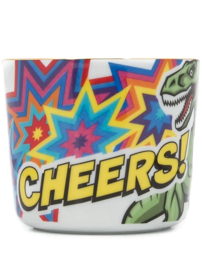 Multicoloured porcelain Rumble Rex champagne goblet from Fürstenberg featuring a graphic print, a round body and a 24kt gold plate trim.