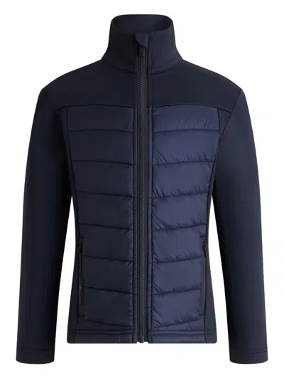 navy blue quilted panels zip fastening high neck long sleeves two zip pockets