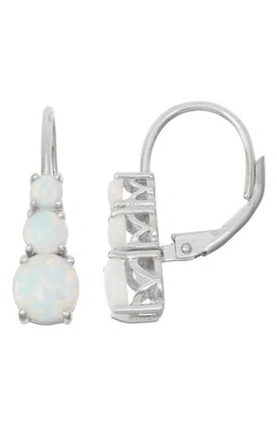 A trio of round-cut opals brings iridescent shine to the front of these lever-back earrings crafted in sterling silver. Lever-back closure Sterling silver/opal Imported