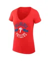 G-III 4HER BY CARL BANKS Women's Red Philadelphia Phillies City Graphic V-neck Fitted T-shirt