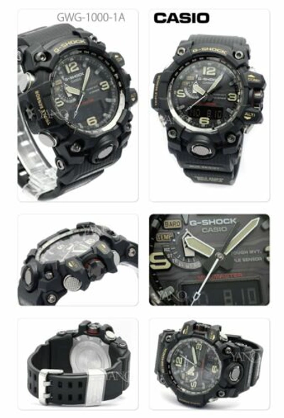 Vibration resistant Neobrite Sapphire Crystal Shock Resistant Screw Lock Crown Mud Resistant 200-meter water resistance Case / bezel material: Stainless steel / Resin Resin Band Double LED light LED light for the face (Full auto LED light, selectable illumination duration, afterglow) LED backlight for the digital display (Full auto LED light, selectable illumination duration, afterglow) Solar powered Time calibration signal reception Auto receive up to six* times a day (remaining auto receives canceled as soon as one is successful) *5 times a day for the Chinese calibration signal Manual receive The latest s... IVSHC I'Store Only 100% Original Watches are available :) CASIO G-Shock GWG1000-1A Vibration resistant Neobrite Sapphire Crystal Shock Resistant Screw Lock Crown Mud Resistant 200-meter water resistance Case / bezel material: Stainless steel / Resin Resin Band Double LED light LED light for the face (Full auto LED light, selectable illumination duration, afterglow) LED backlight for the digital display