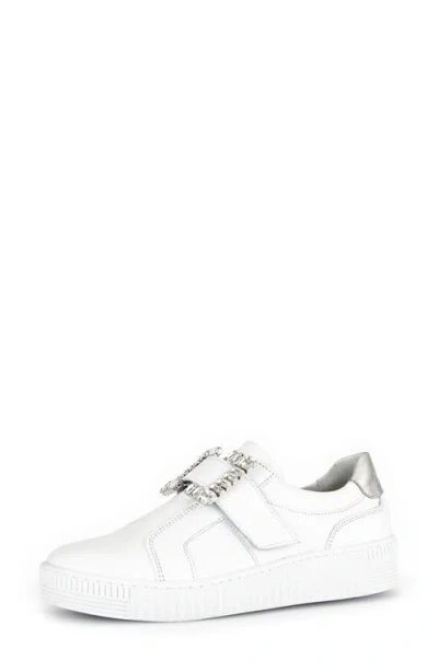Heighten your style while staying comfortable in this handcrafted platform sneaker featuring a sparkly buckle and a removable cushioned insole. Adjustable hook-and-loop strap<br> Removable, cushioned insole Leather upper and lining/rubber sole Imported