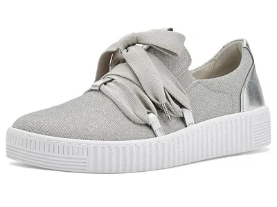 Gabor 83.333 - Women's Shoes : Silver : Give a stylish twist to your every step wearing Gabor 83.333 footwear. ; Suede upper. ; Textile lining. ; OptiFit Ultra Flex Air System insoles. ; Round toe. ; Thick lace closure for style. ; Flat platform. ; All over stylish letter prints. ; Contoured midsole. ; Synthetic rubber outsole. ; Imported. ; Weight of single footwear: 12 oz. Measurements: ; Heel Height: 1 1 4 in ; Weight: 12 oz ; Platform Height: 1 in ; Product measurements were taken using size UK 5.5 (US Women's 8), width B - Medium. Please note that measurements may vary by size. | Gabor 83.333 Women's Shoes Silver : UK 6.5 (US Women's 9) B - Medium, Suede