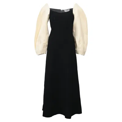 A striking contrast of textures and shapes defines the Gabriela Hearst Dee Maxi Dress in Ivory & Black Wool. The dress features a double-face crepe construction that cinches at the waist and gently flares toward the floor, creating a graceful, flattering silhouette. The knitted upper and fuller sleeves provide visual interest and a modern touch to this timeless, sophisticated design.Gabriela Hearst Dee Maxi Dress in Ivory & Black WoolCondition - ExcellentSigns of wear - No retail tag but Brand tag on., No visible sign of wear., Out of store condition, No sign of being worn.Packaging - NoneColor - black and ivoryMaterial - WoolSize - EU 40 / S / UK8Measurements - Length - 1350; Waist - 340SKU - NAPPUHKCL431325W