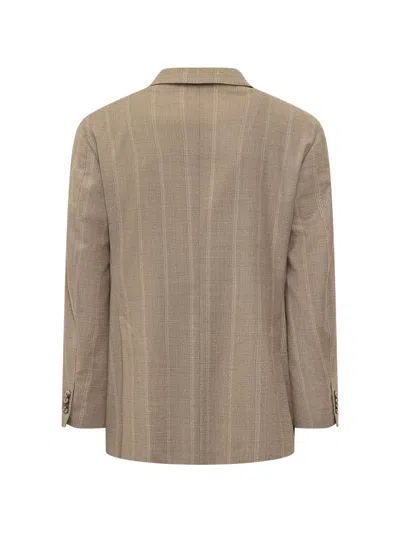 beige striped front button fastening notched lapels front flap pockets