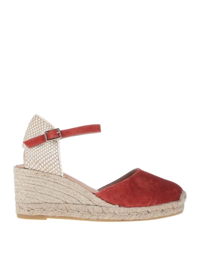 suede effect, no appliqués, multicolor pattern, leather lining, buckle fastening, round toeline, wedge heel, rope wedge, rubber sole, contains non-textile parts of animal origin , Color: Brick red , Size: 6