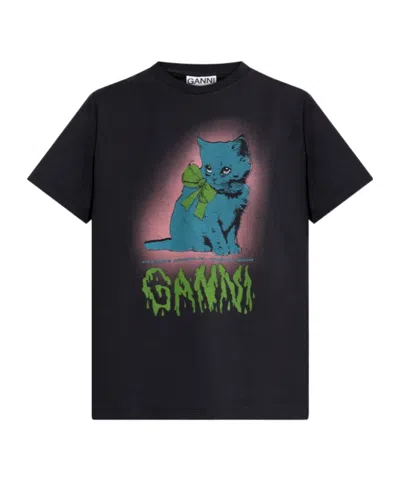 Made From Soft Organic Cotton, The Ganni Kitty T-shirt Brings Playful Energy To Everyday Dressing. Designed With A Round Neckline, Short Sleeves And A Relaxed Fit, It Features A Graphic Print On The Front And The Signature Ganni Logo. A Versatile Wardrobe Staple That Combines Comfort With Contemporary Style. Round Neckline Short Sleeves Kitty Print On Front Ganni Logo Relaxed Fit Alessandra Is 1,75 M And Wears Size S Composition: 100% organic cotton