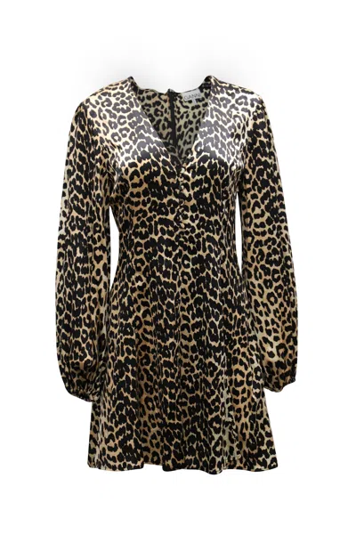 GANNI Blakely Leopard Print Mini Dress In Brown Silk Blend In Multi