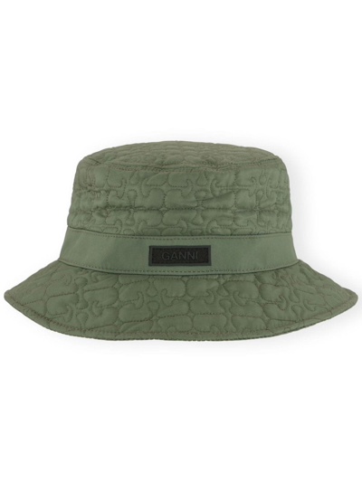 GANNI Logo-patch Quilted Bucket Hat In Green