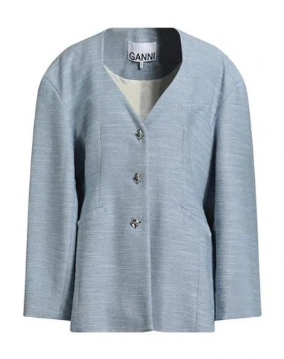 GANNI Woman Jacket Light Blue Size 14 Recycled Polyester, Rayon, Polyester, Linen, Ecovero Viscose