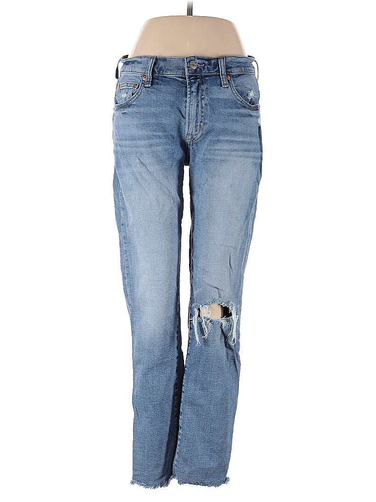Gap Jeans, Size: 27. Item Details: Blue, Hearts Pattern, Distressed Wash, Straight Leg, Cropped, Boyfriend, Mid/Reg Rise, Women's Bottoms, Cotton/Spandex