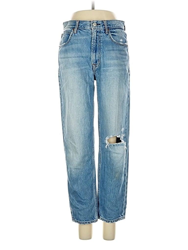 Gap Jeans, Size: 25. Item Details: Blue, Hearts Pattern, Distressed Wash, Boyfriend, Cropped, High Rise, Women's Bottoms, 100% Cotton