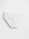 Soft, stretch organic cotton hipster underwear. Light as air and extra breathable. Elasticized waistband and leg openings. Made with 92% organically grown cotton. Organic cotton is better for people and the environment because it's grown without the use of harmful synthetic pesticides and fertilizers. This product was made in a factory that invests in gender equality and women’s empowerment. Through RISE (Reimagining Industry to Support Equality) and Gap Inc. ’s program P. A. C. E. (Personal Advancement & Career Enhancement), we support people who make our clothes to build the skills, knowledge, confidence, and resilience needed to advance in work and life. Learn more. here. Ultra low rise. Low-cut leg. Full back coverage. For more fit and sizing info, check out our Size Guide.