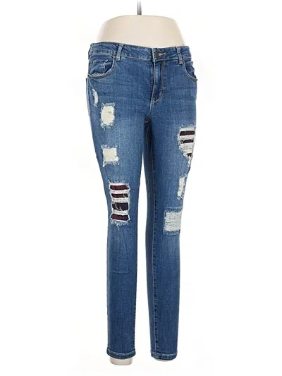 Garage Jeans, Size: 13. Item Details: Blue, Graphic Pattern, Distressed Wash, Skinny Leg, Regular, Mid/Reg Rise, Junior Bottoms, Cotton/Spandex