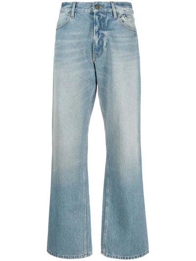 blue cotton stonewashed whiskering effect cut-out detailing belt loops concealed fly and button fastening low-rise wide leg rounded pocket to the side rear patch pocket straight hem. Cotton Cotton 100%.