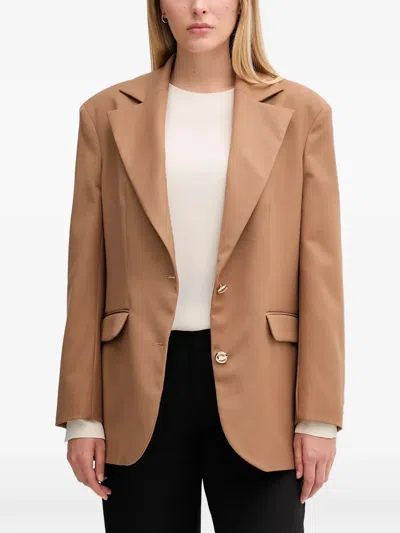 brown notched lapels button details front flap pockets long sleeves gold-tone hardware