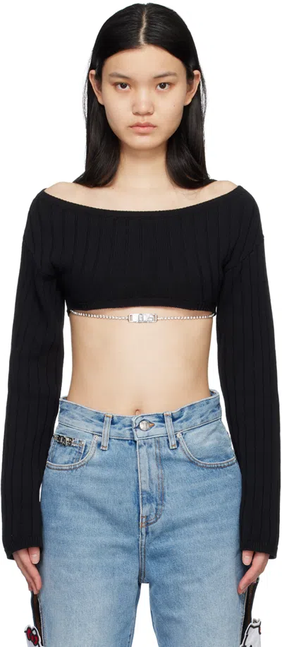 Rib knit cotton- and acrylic-blend sweater. · Boat neck · Cup chain with flip-clasp fastening at waist Supplier color: Black