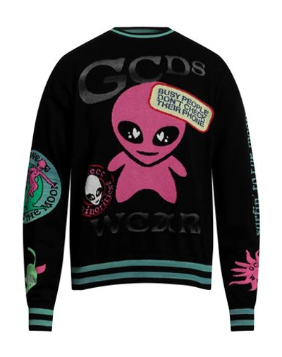 GCDS Man Sweater Black Size L Cotton, Wool, Nylon