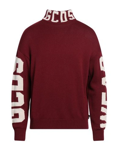 GCDS Man Turtleneck Burgundy Size Xs Wool, Acrylic In Red