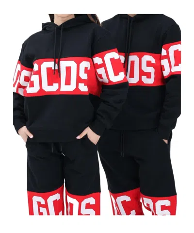 Long sleeve French terry hoodie colorblocked in black and red. Drawstring at hood. Logo printed in white at front, back, and sleeves. Rib knit cuffs and hem. Tonal webbing flag at side-seam. Logo-engraved silver-tone hardware. Supplier color: Black