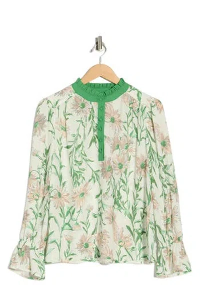 Flared cuffs lend chic drama to a billowy button-front top that's a sophisticated choice for office ensembles. Button half placket Ruffled band collar Long sleeves with elastic cuffs 100% polyester Machine wash, tumble dry Imported