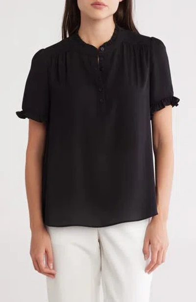 Ruffle Neck Short Sleeve Top In Black
