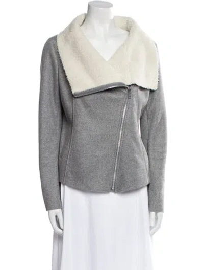 Generation Love Biker Jacket Silver Faux Fur Trim & Shawl Collar Slit Pockets & Zip Closure Fit: Jackets by Generation Love typically fit true to size. | Generation Love Biker Jacket in Silver, Women's M