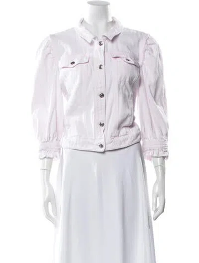 Generation Love Denim Jacket Pink & White Ruffle, Raw-Edge & Distressed Accents Pointed Collar Slit Pockets & Button Closure Size not listed, estimated from measurements. Fit: Jackets by Generation Love typically fit true to size. | Generation Love Denim Jacket in Pink/White, Women's L
