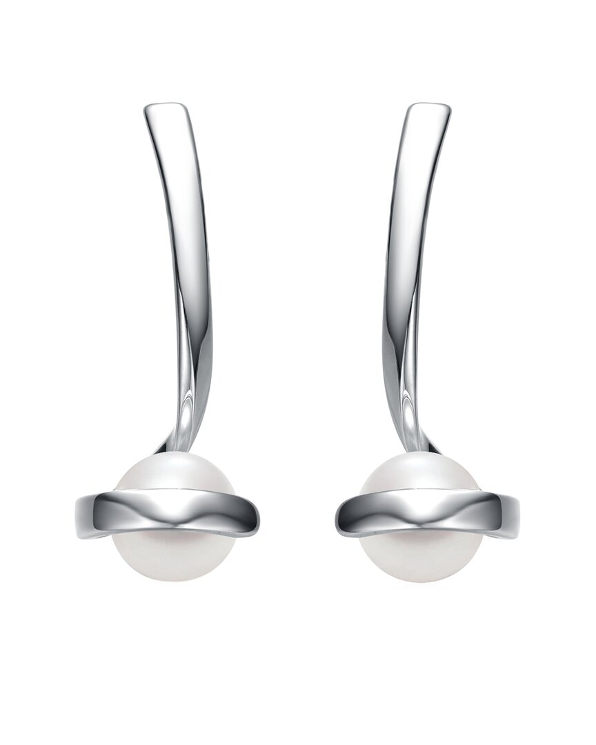 GENEVIVE Silver 7mm Pearl Swirl Dangle Earrings